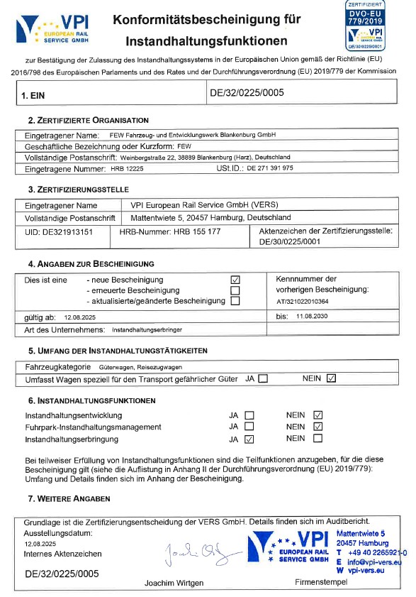 Die FEW Blankenburg GmbH plant, konstruiert, projektiert und fertigt Produkte für die Bahn.